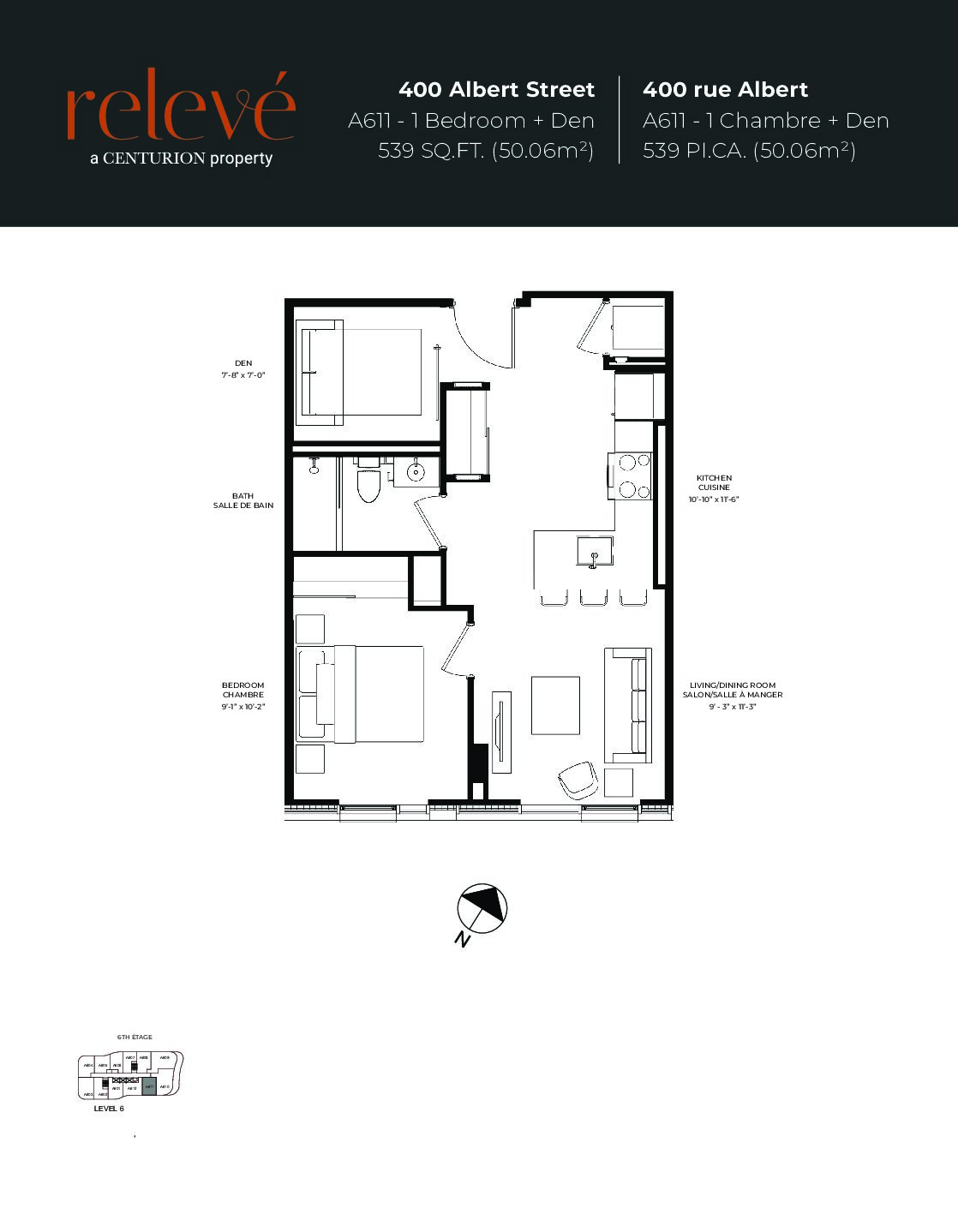 Relevé – Floor Plan – A611 – 1Bed+Den