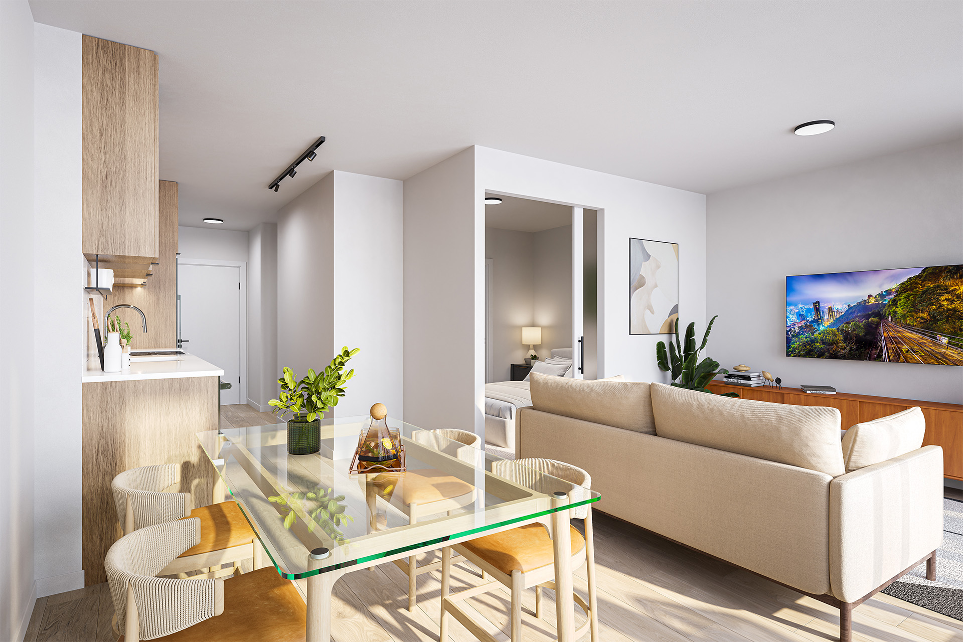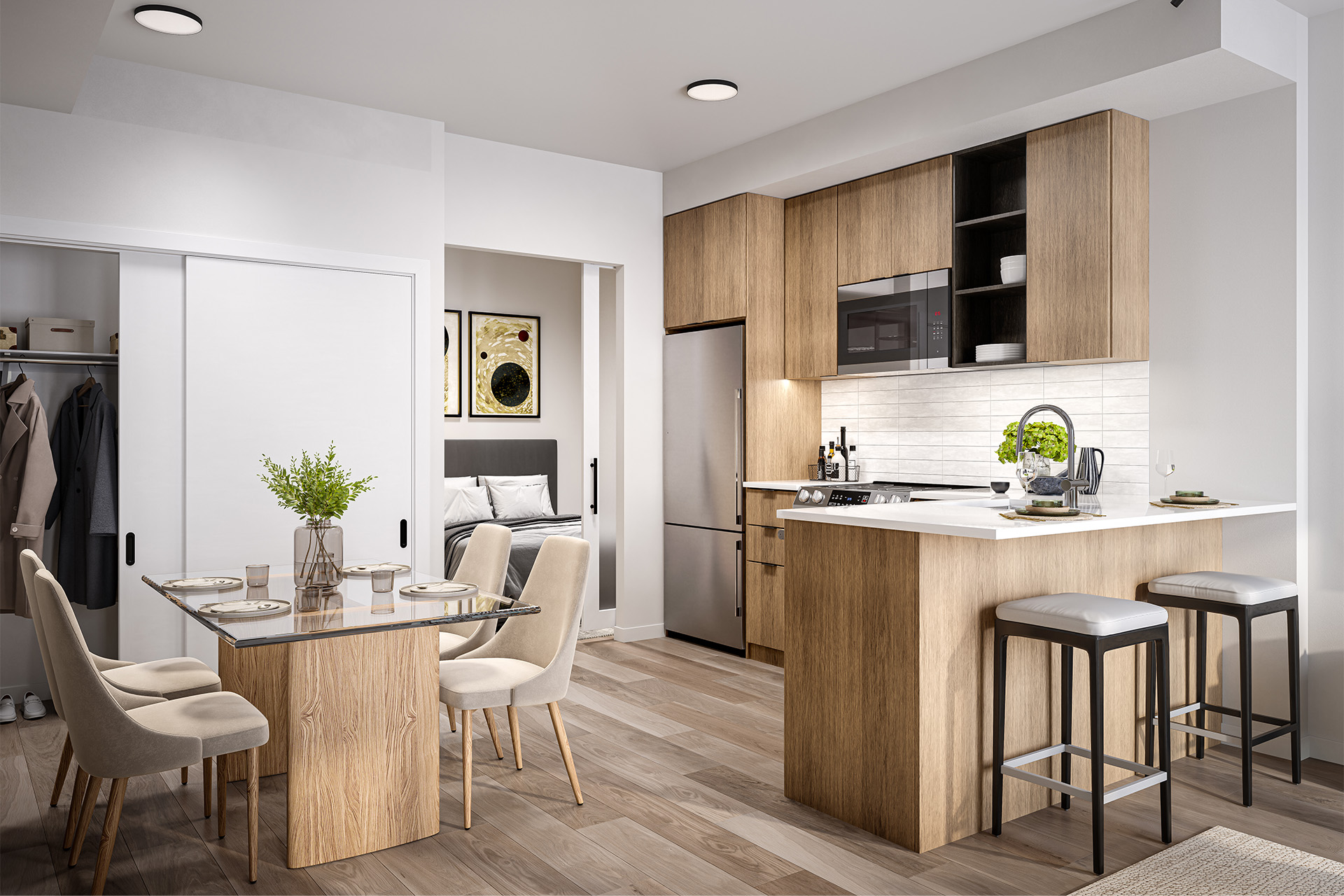 One-Bedroom and One-Bedroom + Den suites offer privacy and a flexible space for working from home or entertaining. The additional den is perfect for a home office or reading nook.