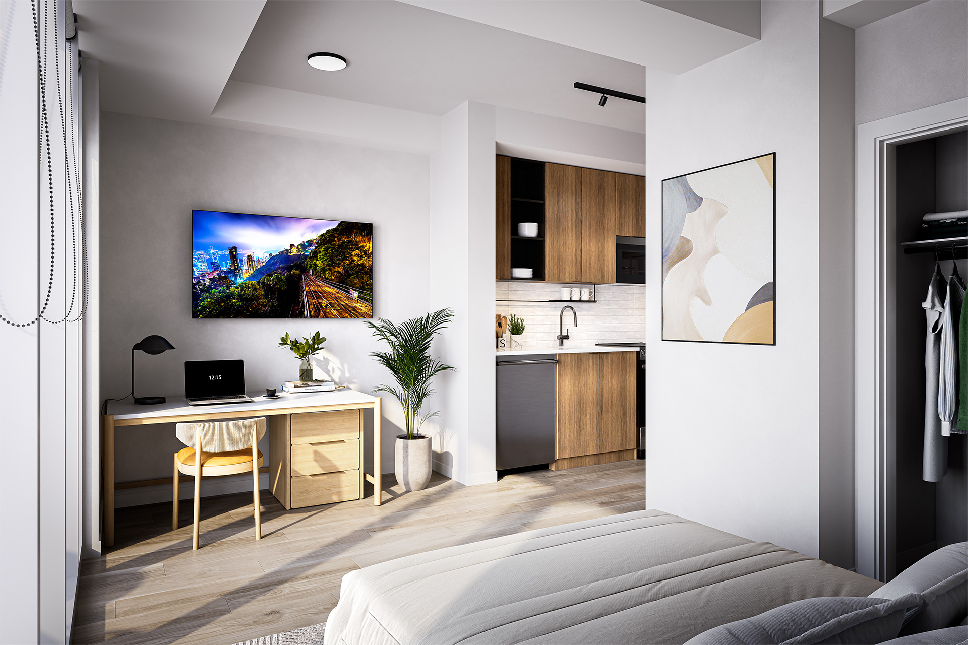 Studio Suites are ideal for individuals who value efficiency and minimalism. These open-concept layouts offer modern kitchens, in-suite laundry, and spa-inspired bathrooms—all in a compact, stylish footprint.